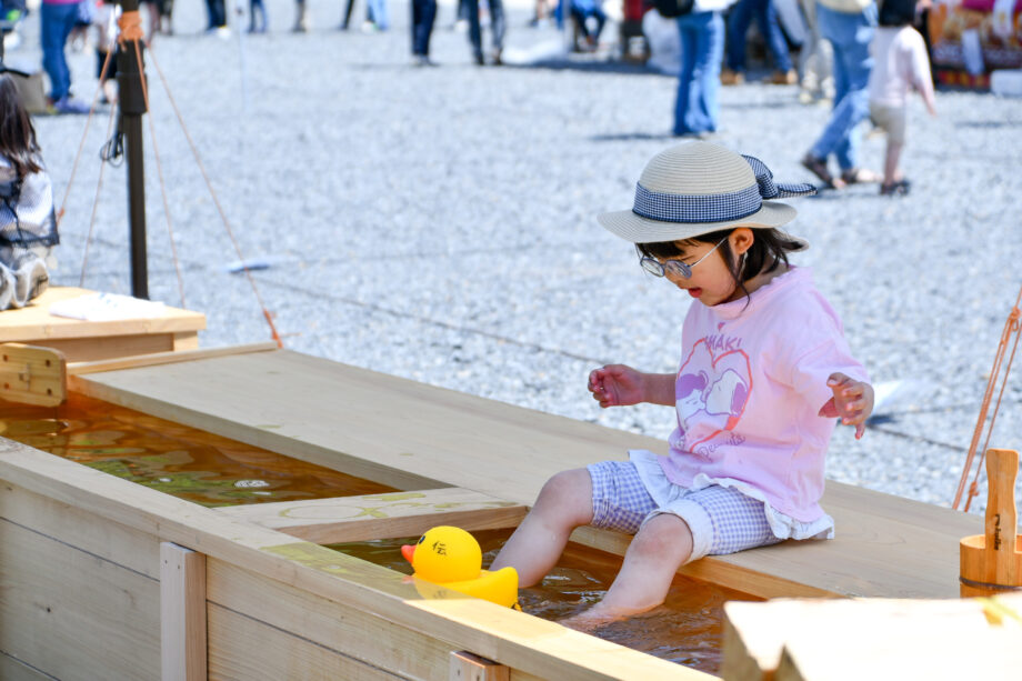 足湯は、遊びの合間にほっと一息つける癒やしのスポットです。